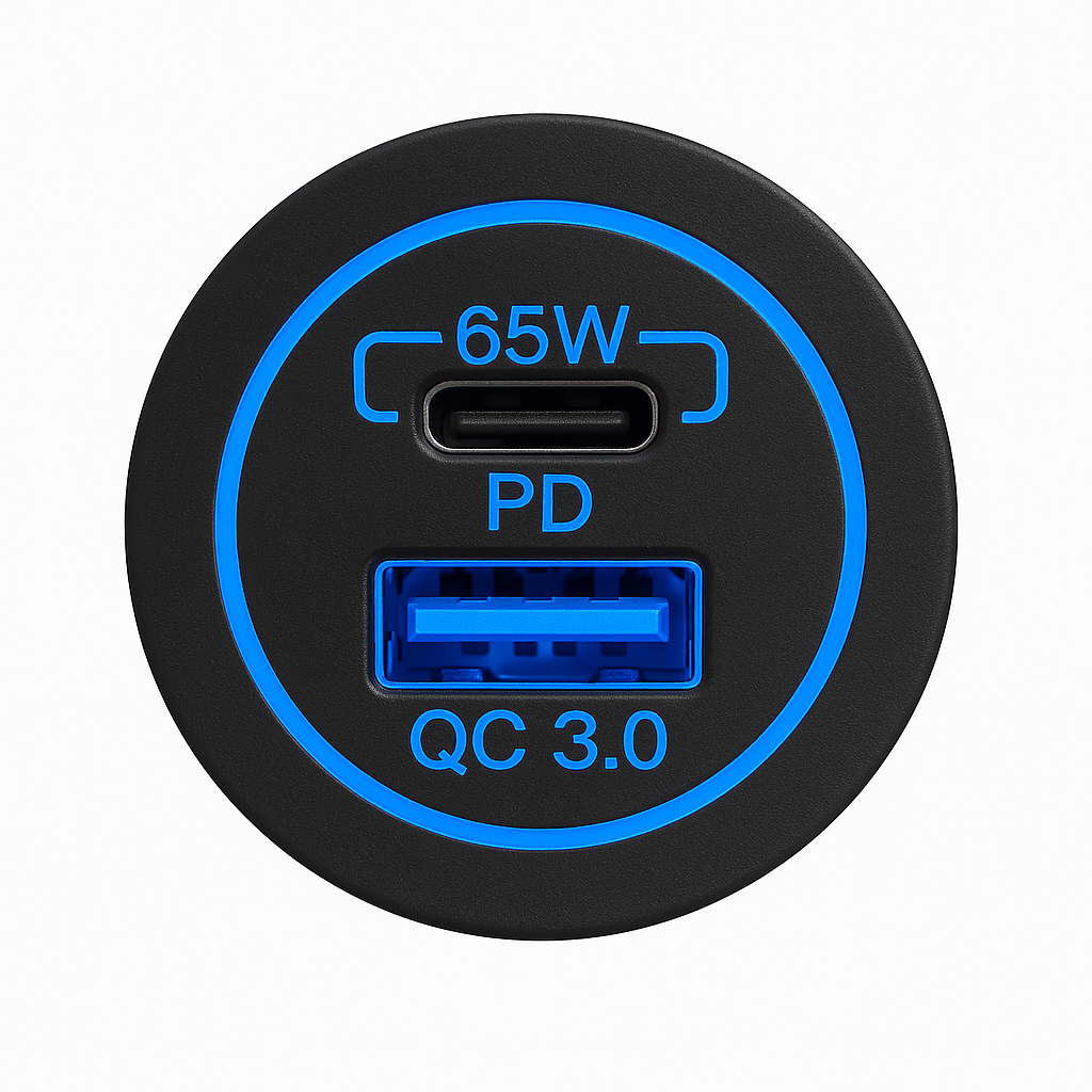 Panel Mount Combination USB A 18W USB C 65W Fast Device Charger