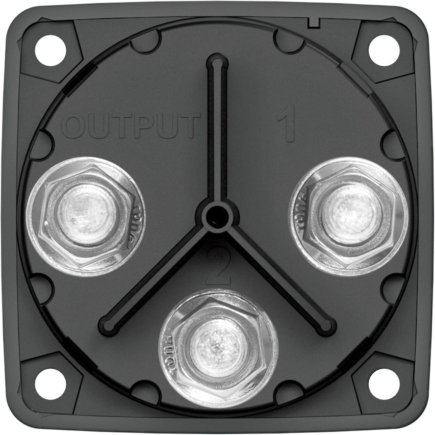 6006200 m-Series (Mini) Battery Switch Single Circuit ON/OFF Switches a single battery to a single load group. Multiple switches can be used to manage several isolated circuits including cross connecting for emergency parallel Ignition protected – Safe for installation aboard gasoline powered vehicles and boats. Case design allows surface front panel or rear panel mounting. Isolating cover with snap-on sections protects rear contacts 3/8″-16 tin-plated copper studs for maximum conductivity and corrosion resistance accepts 3/8″ and M10 ring terminals. 7/8″ (22.22mm) stud length to accept multiple cable terminals. Ideal for marine, RV and emergency vehicle applications. Manufactured with non-corrosive marine grade metals. Molded in durable reinforced polycarbonate. Tactile textures indicate knob position by feel only. Label with international ON/OFF.