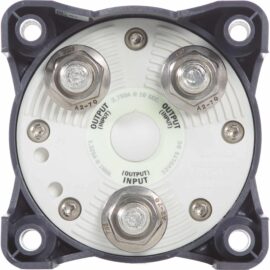 Single M8 stud MRBF fuse block with 3/8″ mounting hole.  Rated for 30-300A and 58V DC. Designed for the most demanding environment to provide high current protection for the tightest space constraints. Suitable for main and auxiliary circuit protection such as alternator outputs, starter motor inputs and accessory circuits.