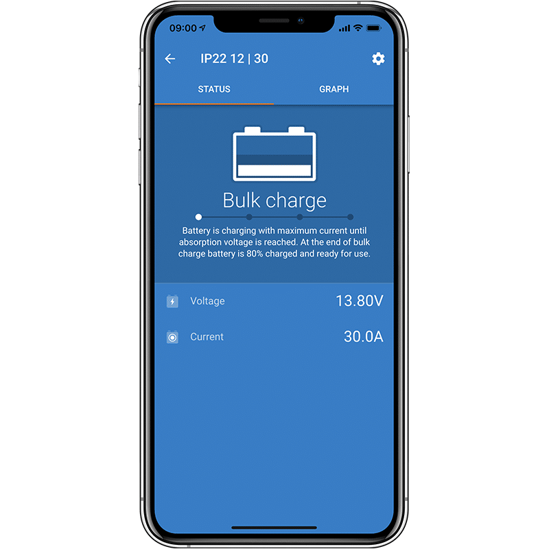 The Blue Smart IP22 12V/30A (1) Charger is the new professional battery charger with built-in Bluetooth. The Blue Smart IP22 Charger can be used on devices in your workshop and on motor vehicles, such as (classic) cars; motorbikes; boats and camper-vans.